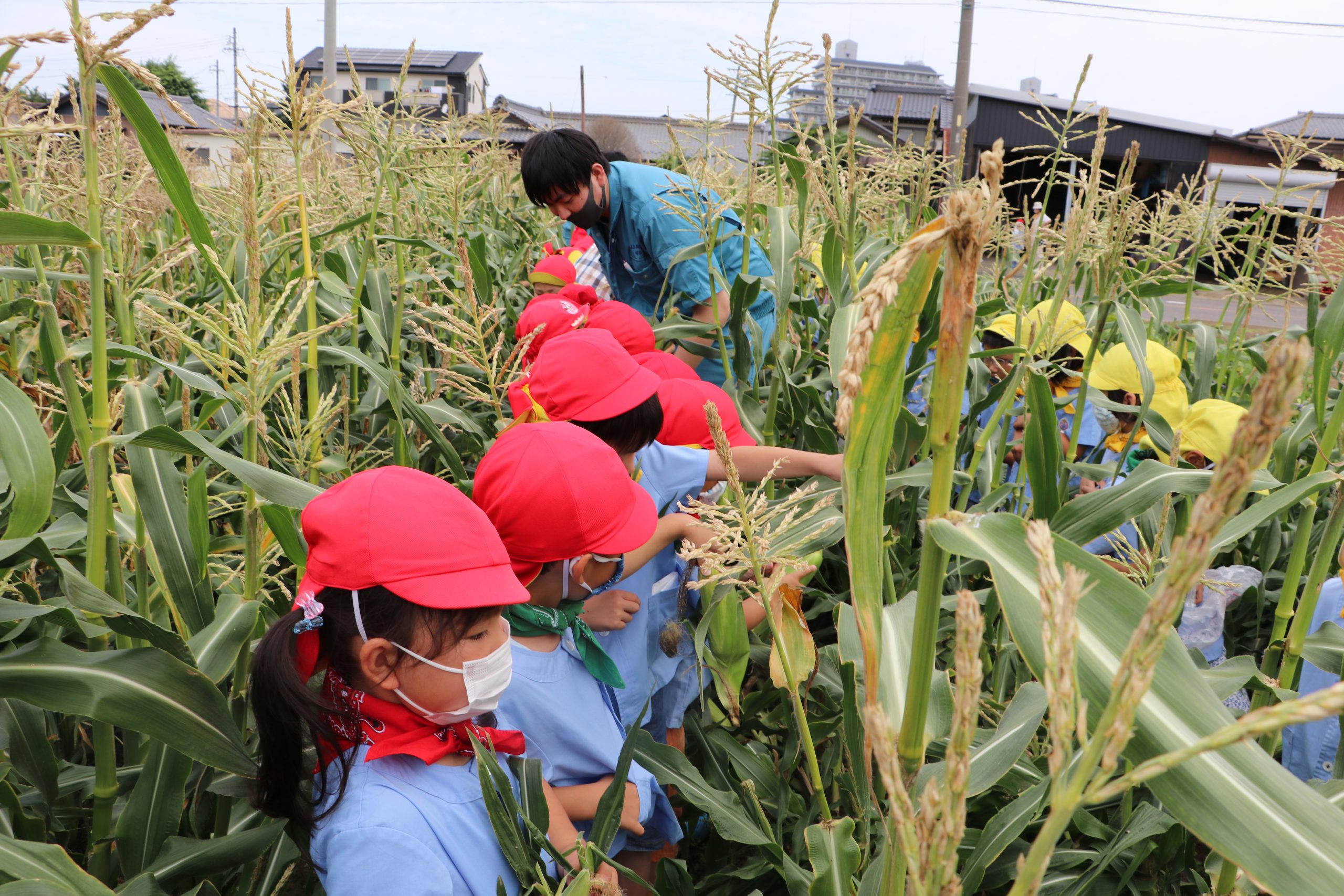 布袋西保育園の園児がトウモロコシ収穫体験を行いました 6月22日、江南市の鈴木勝子さんの畑で江南市立布袋西保育園の年長、年中の園児がトウモロコシの収穫体験を行いました。園児らはトウモロコシを前に横1列に並び、布袋支店の営農生活課職員に収穫方法の説明を受け、選んだトウモロコシをもぎ取りました。 生産者の鈴木さんは、「地元の保育園の園児に農業体験をさせてあげたい」という熱い思いから長年に渡りこの活動に取り組んでおり、園児らは毎年収穫体験を楽しみにしています。