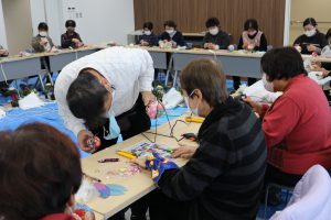女性部犬山支部「寄せ植え教室」 12月3日に女性部犬山支部が犬山支店で寄せ植え教室を行いました。 有限会社花とよ生花店の横井孝治店長を講師に迎え、色とりどりの正月花をアレンジした寄せ植えと木目込み球をアレンジした正月飾りをつくりました。